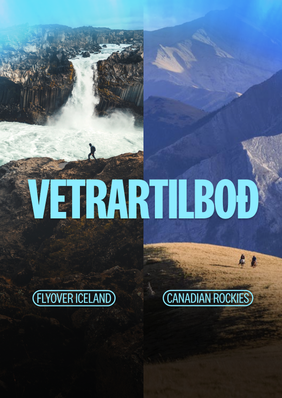 Svífðu yfir og allt um kring stórbrotna íslenska náttúru og taktu svo flugið yfir kanadísku klettafjöllin.